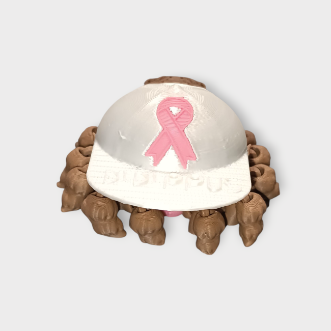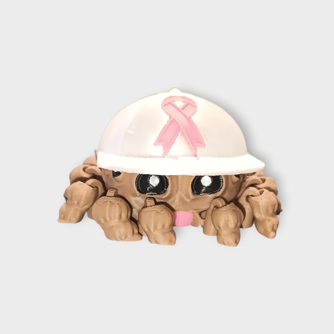 Cette année, nous allons un peu plus loin avec “Didi”, notre petite araignée mascotte, qui pour l’occasion s’est habillée spécialement et arbore sa casquette blanche ornée du ruban rose, symbole de la lutte contre le cancer du sein.