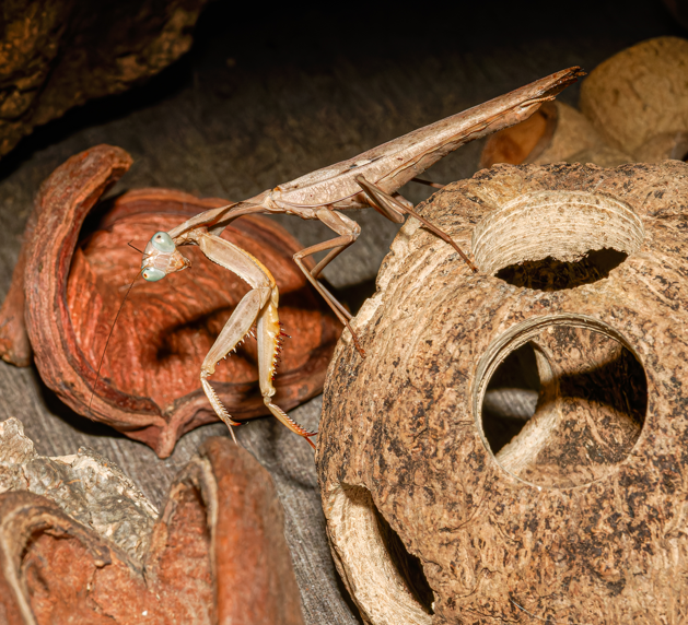 Particularité Grande mante au bouclier pronotum, cannibalisme possible