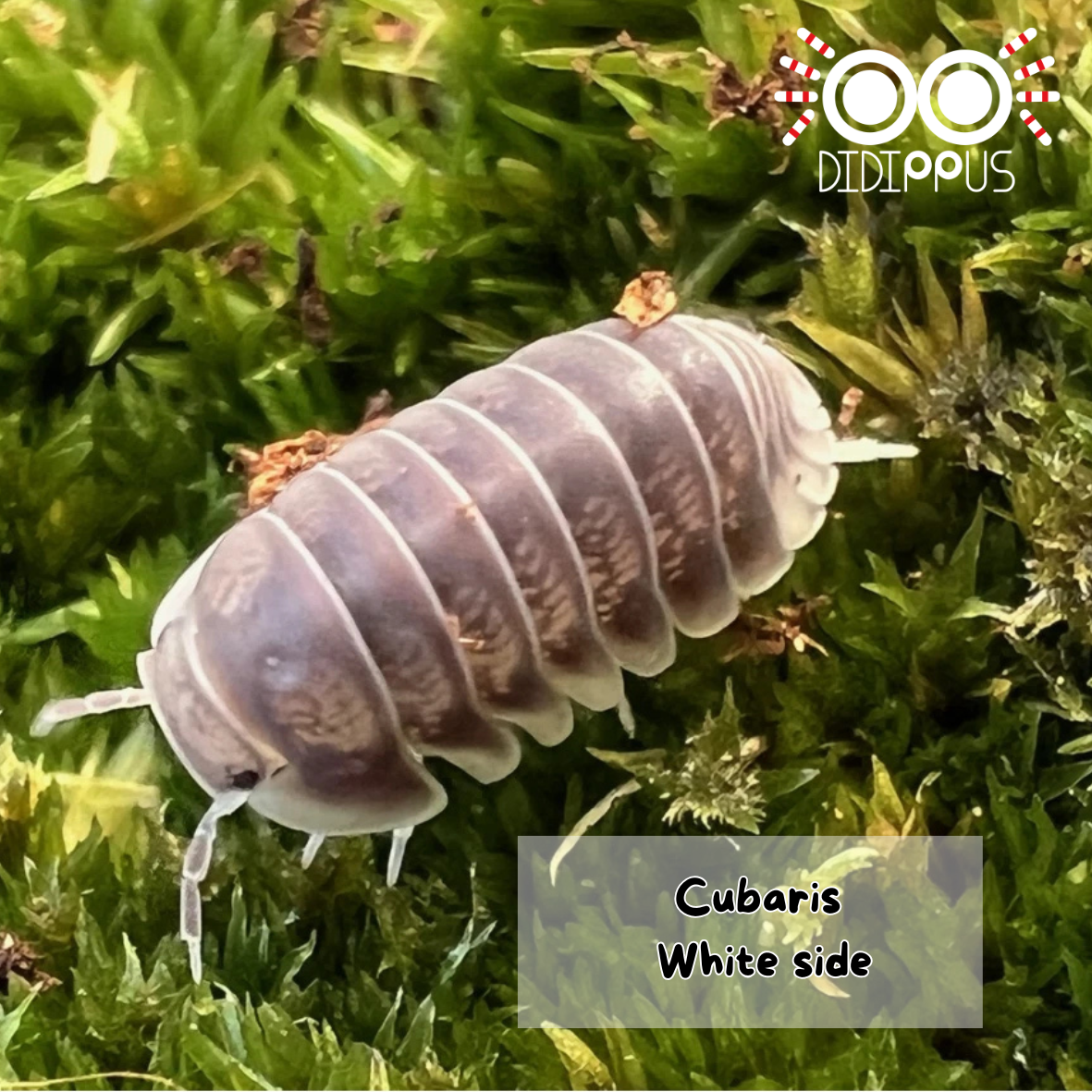 Cubaris sp. “White Side” est une variété très appréciée pour ses flancs blancs contrastés, son corps compact et sa tendance à se rouler partiellement en boule.