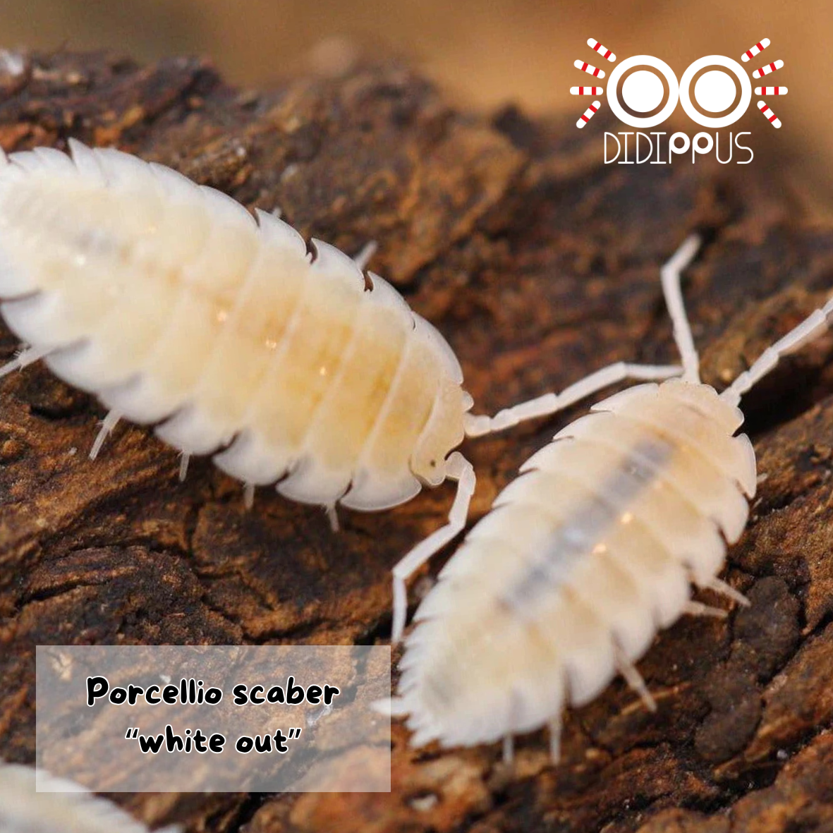 Porcellio scaber “White Out” est une variété populaire, connue pour son corps presque entièrement blanc avec parfois quelques nuances grises.