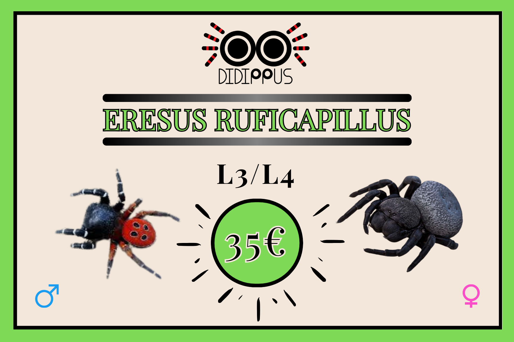 La reproduction chez les Eresus est difficile voire impossible.
