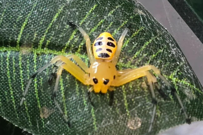 Les Platythomisus sont des araignées crabes très colorées, souvent jaunes avec des motifs noirs, qui attendent leurs proies sur les feuilles ou les fleurs.