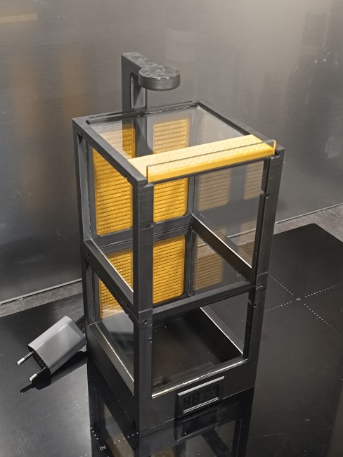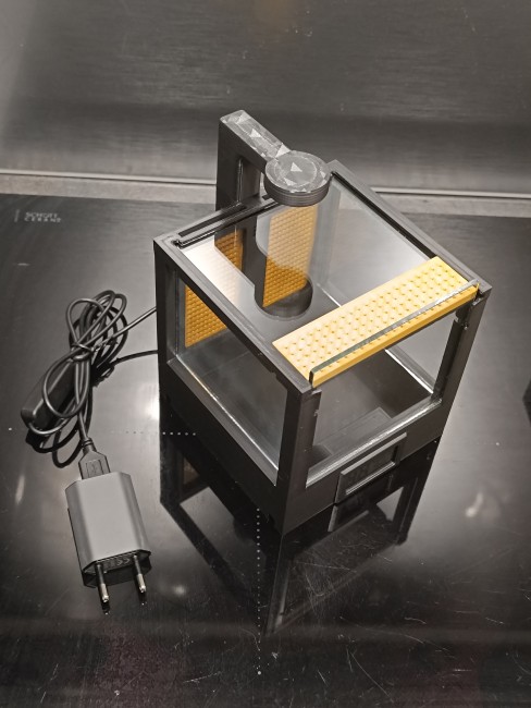 La sonde étant placée dans le terrarium, les données restent représentatives de l’ensemble de l’habitat même après installation du module supérieur.