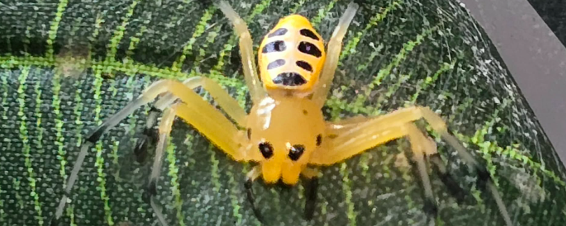 Les Platythomisus sont des araignées crabes très colorées, souvent jaunes avec des motifs noirs, qui attendent leurs proies sur les feuilles ou les fleurs.